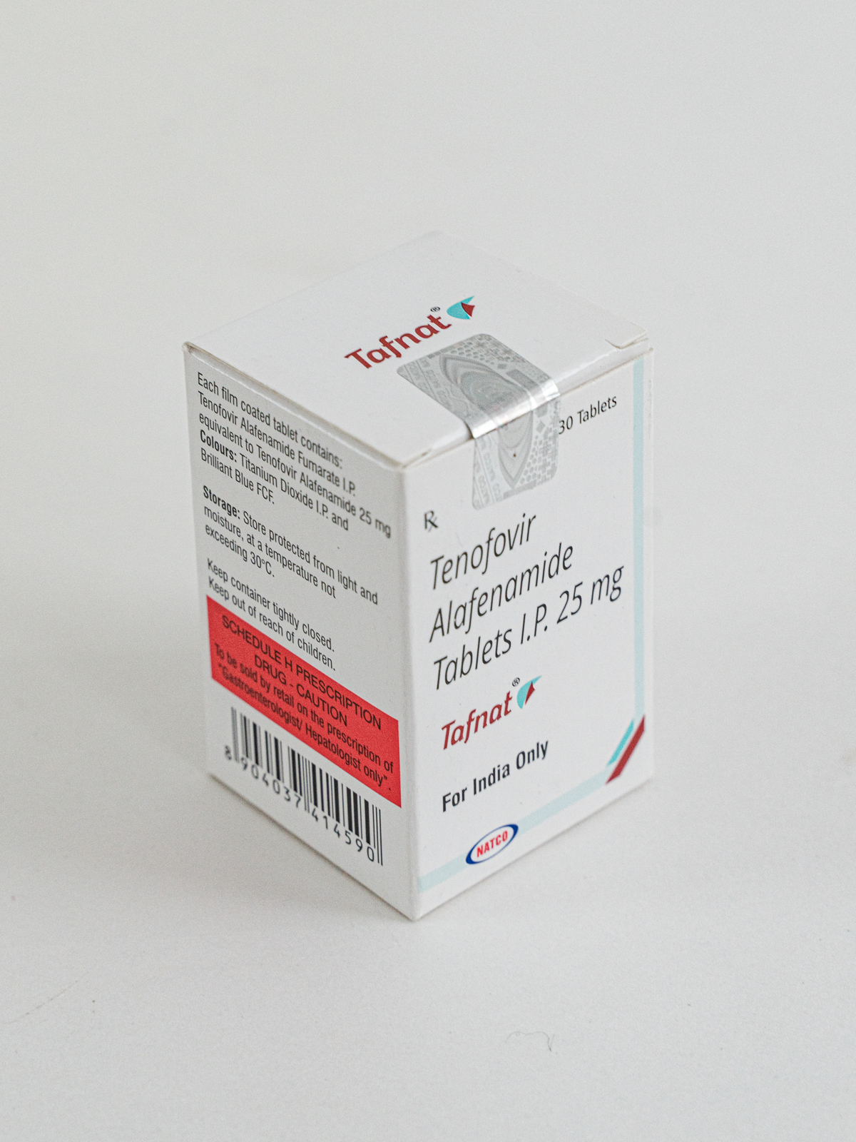 Потом на рынок вышел дженерик индийской компании Natco Pharma, который по цене в несколько раз ниже оригинала. Он полностью соответствует Vemlidy, хорошо переносится, одобрен к применению Всемирной организацией здравоохранения. Вирусологи, гепатологи и другие специалисты оставляют преимущественно положительные отзывы о Tafnat.Одна упаковка содержит 30 таблеток с дозировкой 25 мг. Поставляется в пластиковых флаконах с с прилагающейся инструкцией. Действующим компонентом выступает тенофовира алафенамид, представляющий собой нуклеотидный ингибитор обратной транскриптазы. Он очень похож на тенофовир, но с большей активностью угнетает деятельность вирусных возбудителей, а также легко проникает в лимфоидные ткани. Особенностью является возможность применения небольших доз за счет более адресной доставки в гепатоциты.Необходимость купить Тафнат может возникнуть на фоне:• ВГВ — инфекционная болезнь, поражающая печень, может протекать бессимптомно или сопровождаться разрушением печеночной паренхимы. Препарат назначают взрослым и детям от 12 лет при компенсированном заболевании, которое сопровождается активным размножением вируса, усиленным работой АЛТ или на фоне воспалительного процесса, фиброза, подтвержденного гистологическим исследованием. Также используется как основной инструмент в борьбе с ВГВ на фоне резистентности к ламивудину.• ВИЧ -1 — среди детей от 12 лет и взрослых в рамках комплексной антиретровирусной терапии, в том числе при подтвержденной устойчивости заболевания к НИОТ или в случае токсичности АРВ-препаратов первой линии.